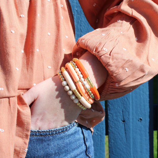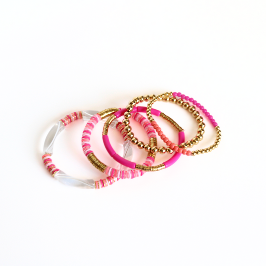 Pink Rainbow Polymer Bracelet with Gold Flats