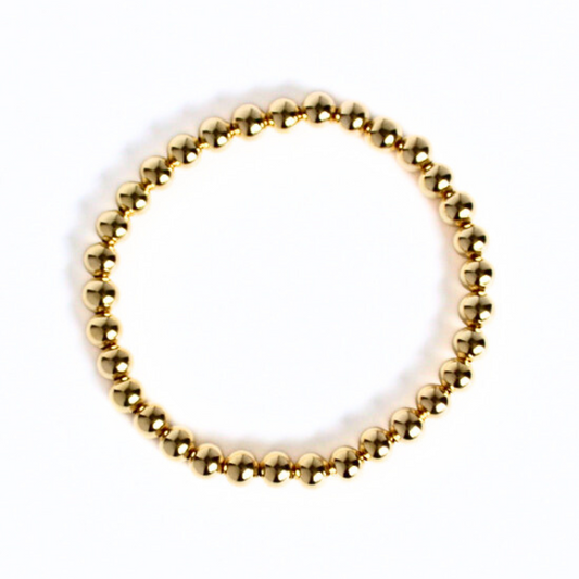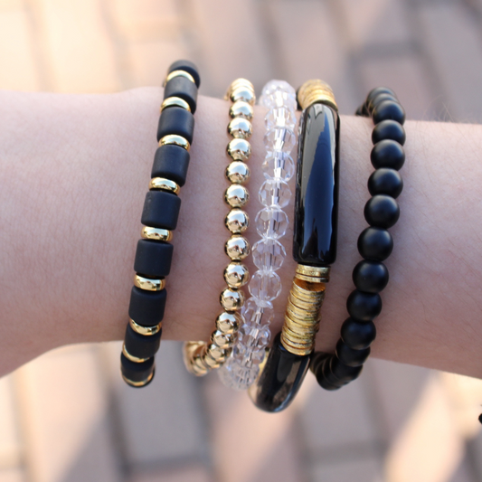 Personalized Gold Beaded Bracelet with Black Letter Bead