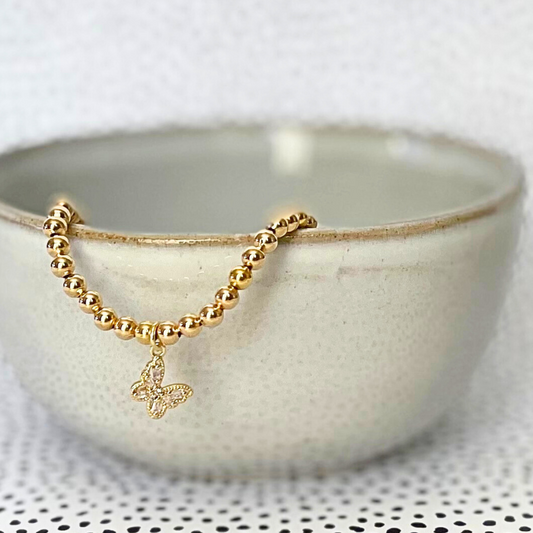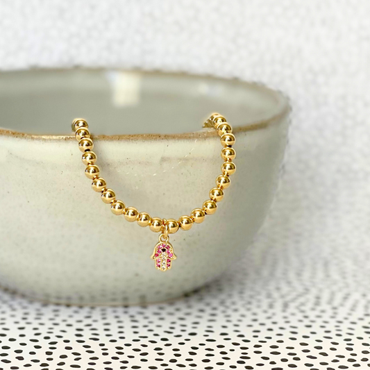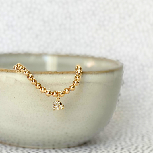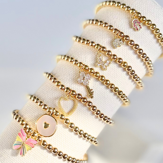 Personalized Gold Beaded Bracelet with Black Letter Bead