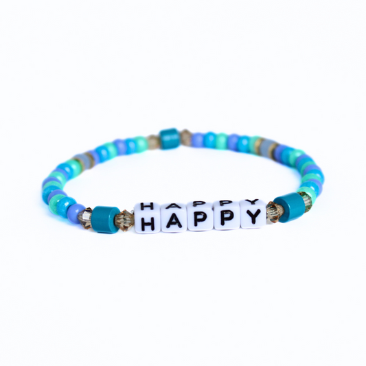 Personalized Gold Beaded Bracelet with Black Letter Bead
