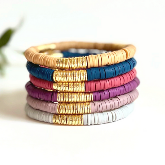 Dark Purple Polymer Stretch Bracelet with Gold Flats