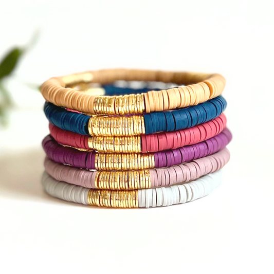 Coral and Gold Polymer Stretch Bracelet