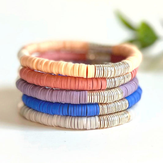 Blue Rainbow Polymer Stretch Bracelet with Gold Flats