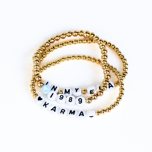 1989 Custom Gold Beaded Word Bracelet 5mm