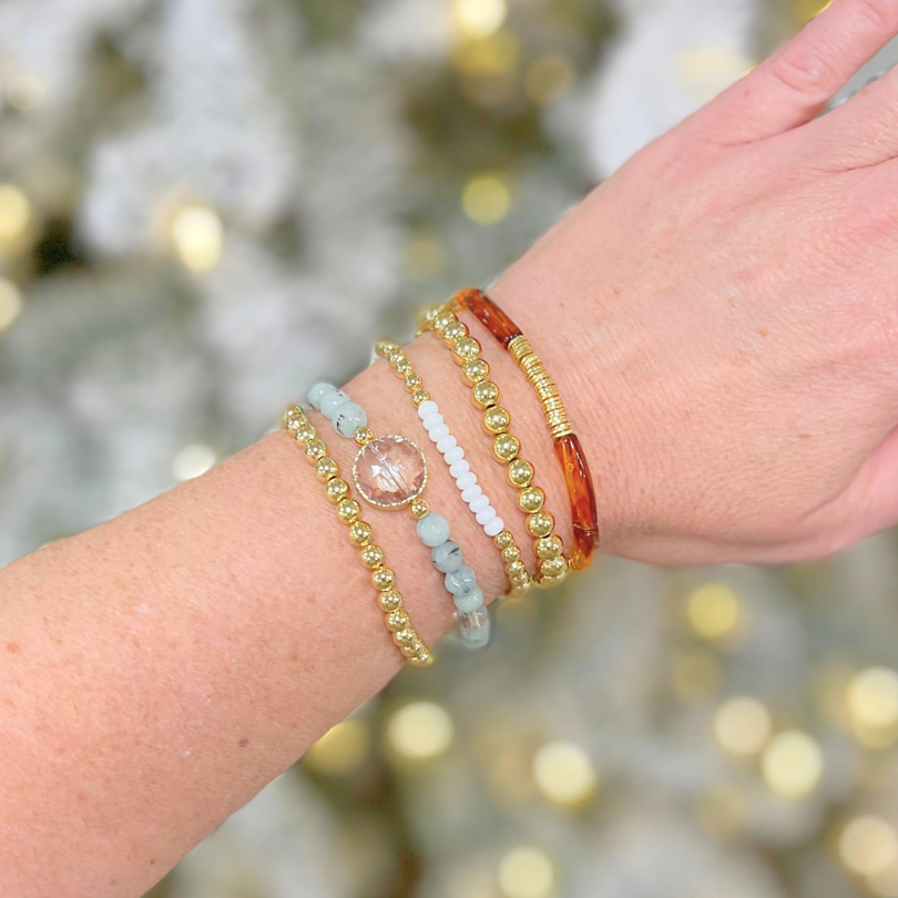 This bold and beautiful bracelet is a treat for your wrist! The dynamic hues of the blue gemstone, the sparkling crystal bead and the beaded bracelet all come together to make a statement that won't be forgotten. Elevate any holiday style with this amazing piece!