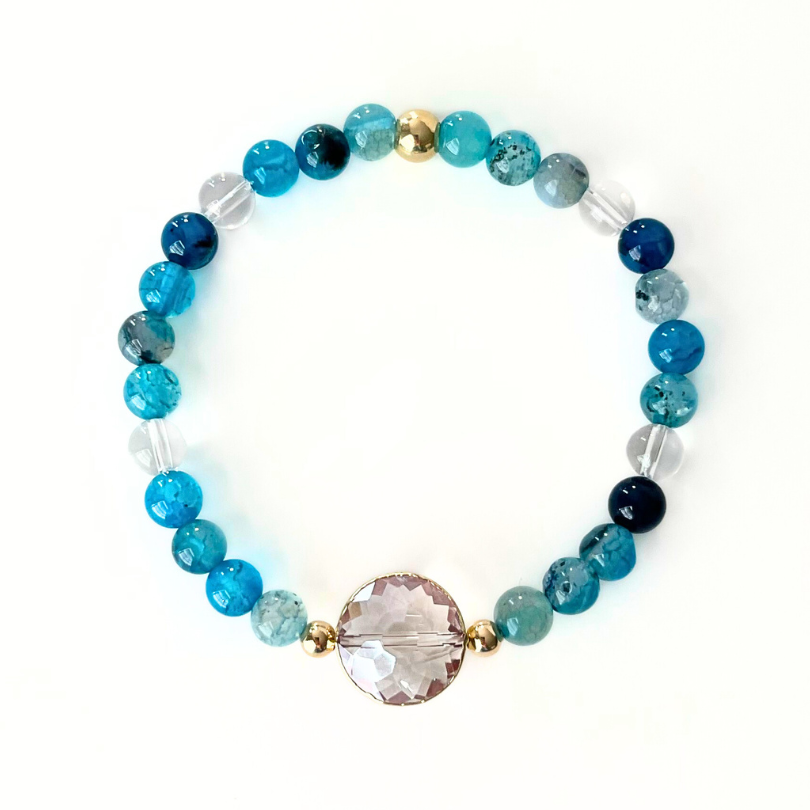 This bold and beautiful bracelet is a treat for your wrist! The dynamic hues of the blue gemstone, the sparkling crystal bead and the beaded bracelet all come together to make a statement that won't be forgotten. Elevate any holiday style with this amazing piece!