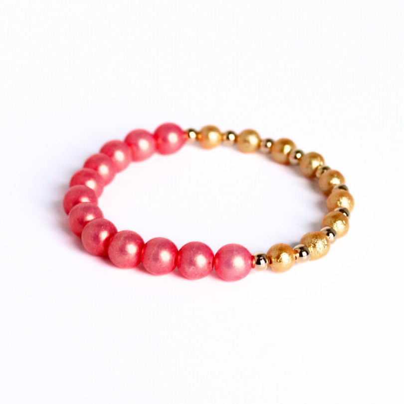 Red Shimmering Acrylic and Gold Pearl Beaded Bracelet