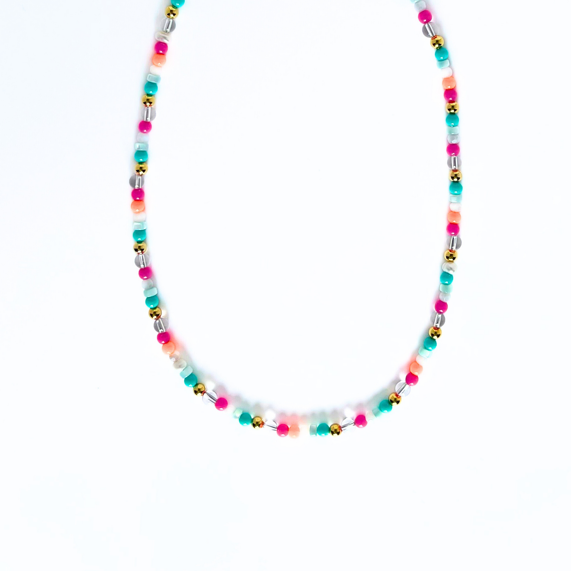This Sprinkle Beaded 4 mm Necklace is a perfect way to sprinkle a little extra sparkle into your day! Its 4mm seed and clear quartz accent beads are sure to catch a few admiring glances, while the gold filled round beads bring it all together! It's sure to be your go-to accessory for any occasion!